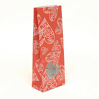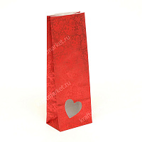 Пакет подарочный 26,0х10,0х6,0 бумага+п/э с окном сердце, печать "Сердечные поздравления"-