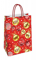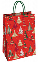 Пакет подарочный 26,0х10,0х6,0 бумага+п/э с окном, печать "Елка серебро/красный"