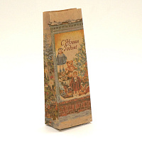 Пакет фасовочный с готовым принтом 19,0х10,0х7,0 из коричневой крафт бумаги, "Новогодние"