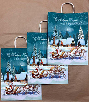 пакеты новогодние 32х22х11 белые с кручен. ручками, печать "С НОВЫМ ГОДОМ И РОЖДЕСТВОМ"